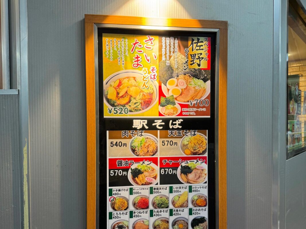 ラーメンなだけでも異質なのに、こちらのお店が推すのは「佐野ラーメン」というこだわりよう。そう、こちらの立ち食いそば店では「佐野ラーメン」が食べられるのです。「醤油ラーメン」とは別にメニュー設定されているところに強い意志を感じます。