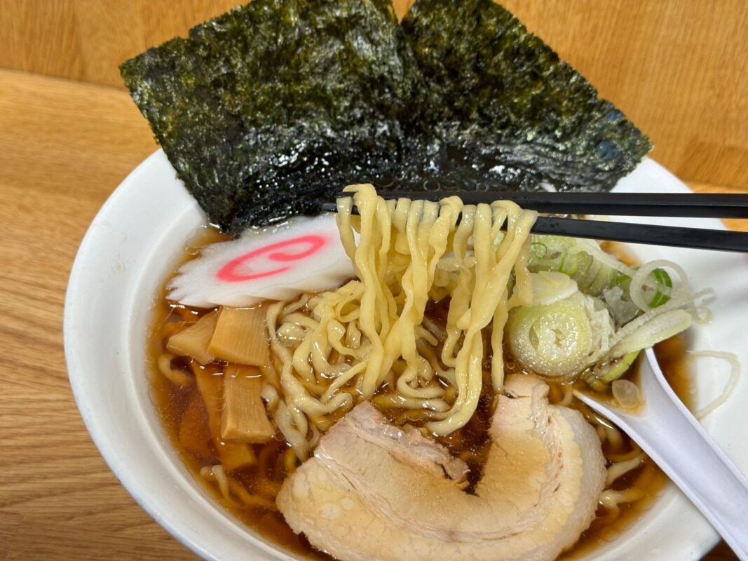 スープは佐野ラーメンらしいあっさりとした醤油味。チャーシューはとろけるタイプ。海苔2枚が嬉しいですね。なるとは良いアクセントです。