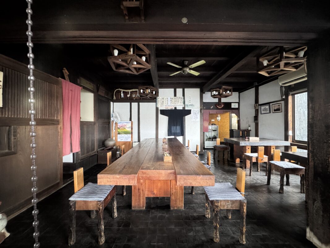 中むらさんといえば、古民家風の建物がなかなかに特徴的。実は江戸時代から続く材木店を改装してお店にしているそうで、懐かしい歪みのあるすりガラスや古い柱がむき出しの店内など、なんだか田舎の家にお呼ばれしてしまったかのよう。この温かみが好きだったんですよね。